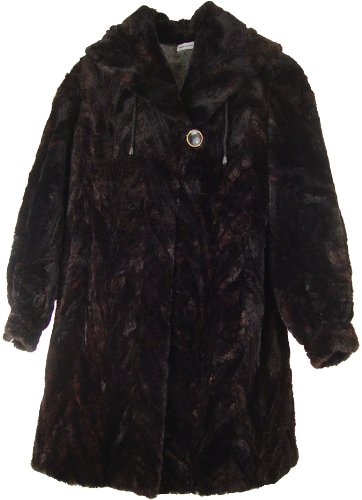 2029 Women's Size 18 or 14W Multi Color New Real Knee Length Classic Australian Shearing Fur Half Coat Parka Fixed Draw String Hood Hook Clasp Front Closure Polyester Lining Inside Pocket Slash Outside Pocket